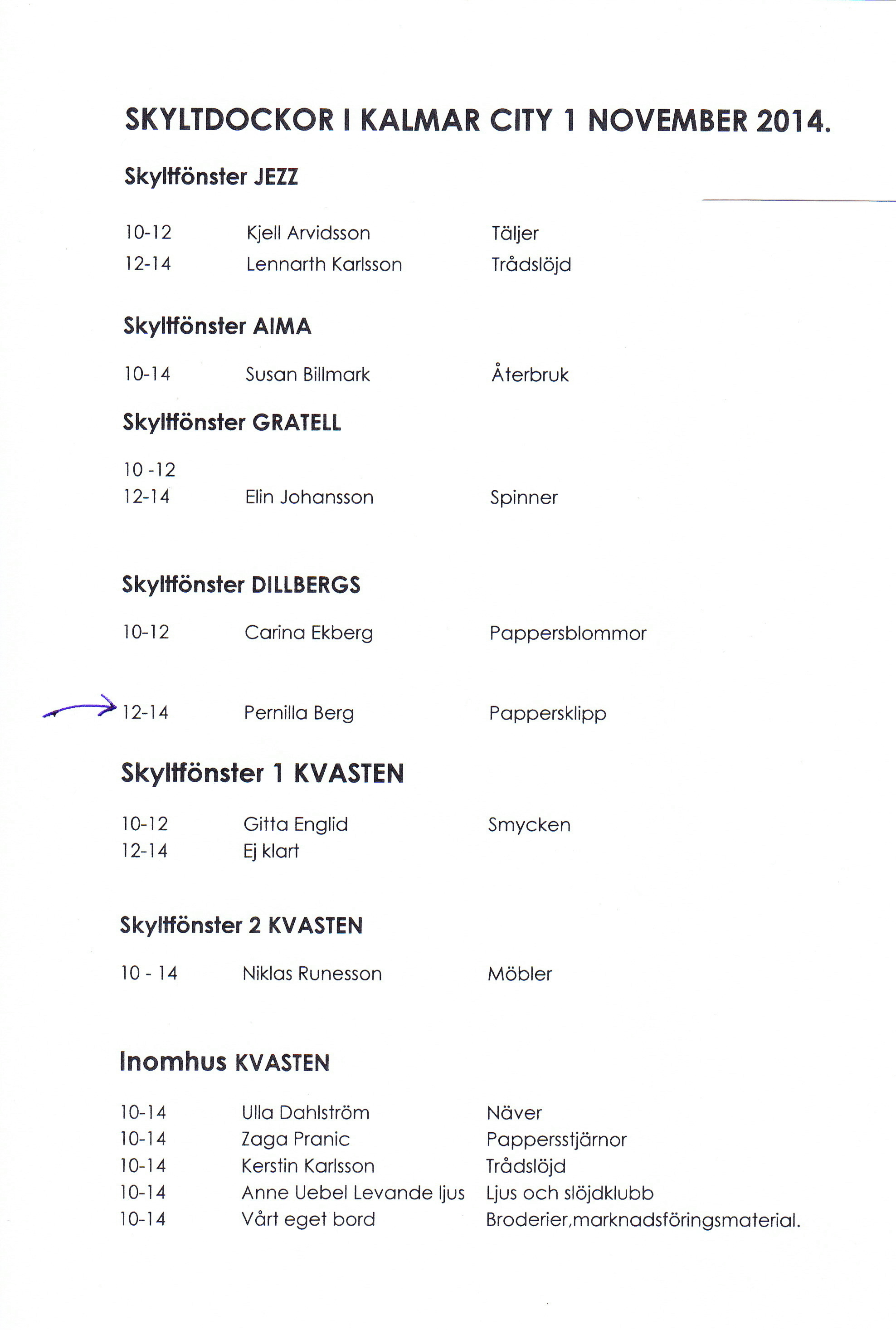387 92 BorgholmLördagen 15/11 i Kalmar 14.00- 16.30
